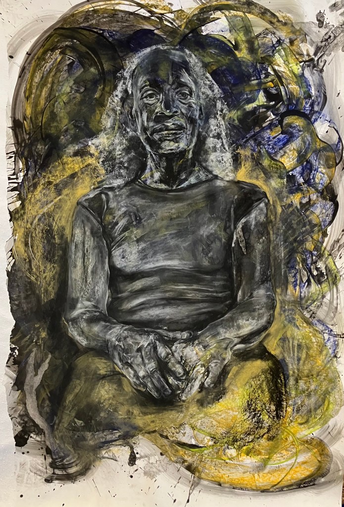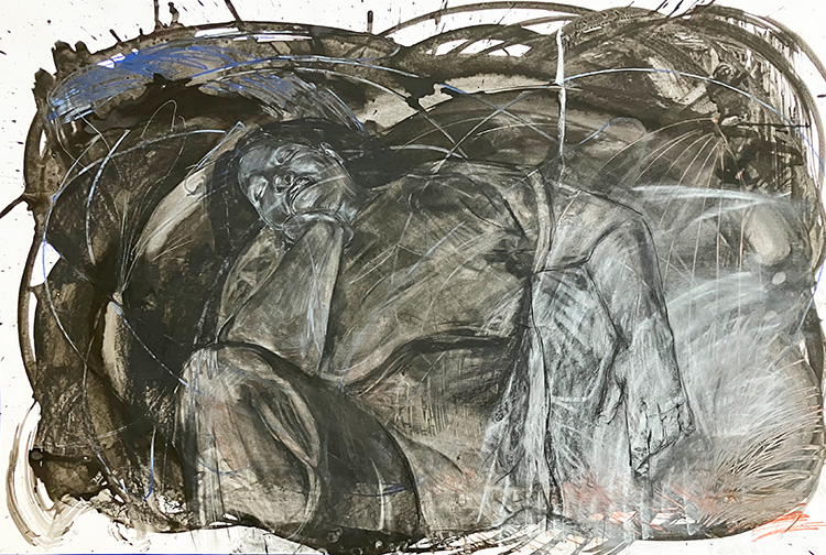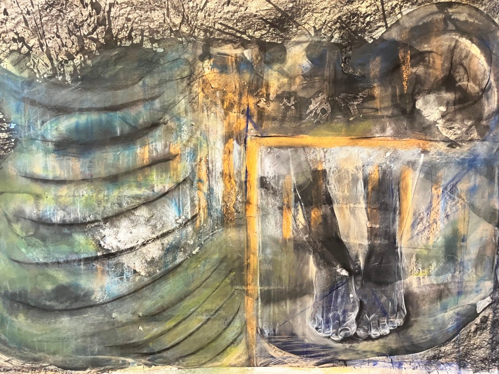 Memory (2024) Ink, pastel, and charcoal on paper. 37 x 50 inches.
