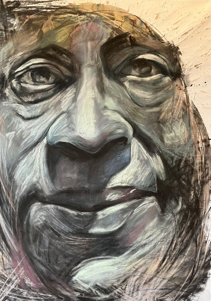 Everything we must face. (2024) Ink, pastel, and charcoal on paper. 50 x 35 inches.